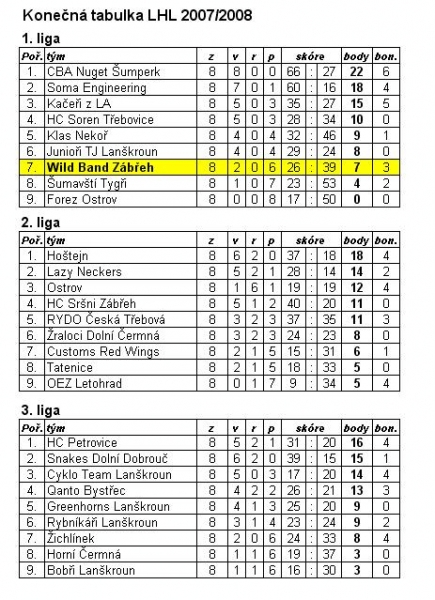 2007/08 statistiky / výsledky v LHL:Osobní stránka na adrese: wild-band.freepage.cz