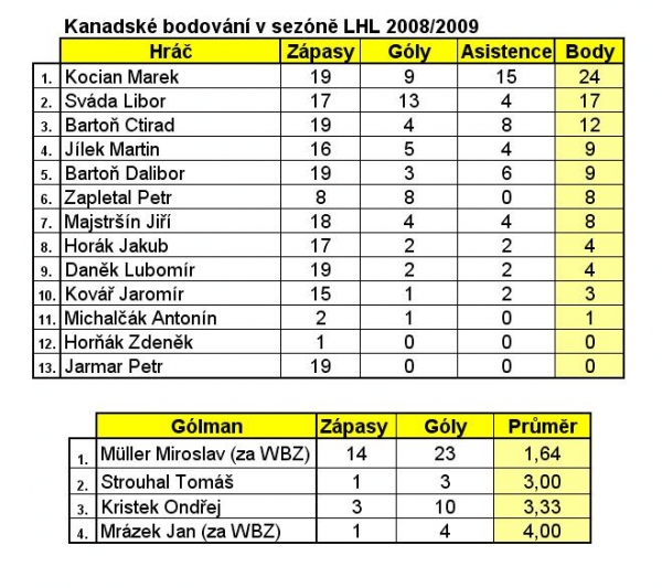 2008/09 statistiky / výsledky v LHL:Osobní stránka na adrese: wild-band.freepage.cz